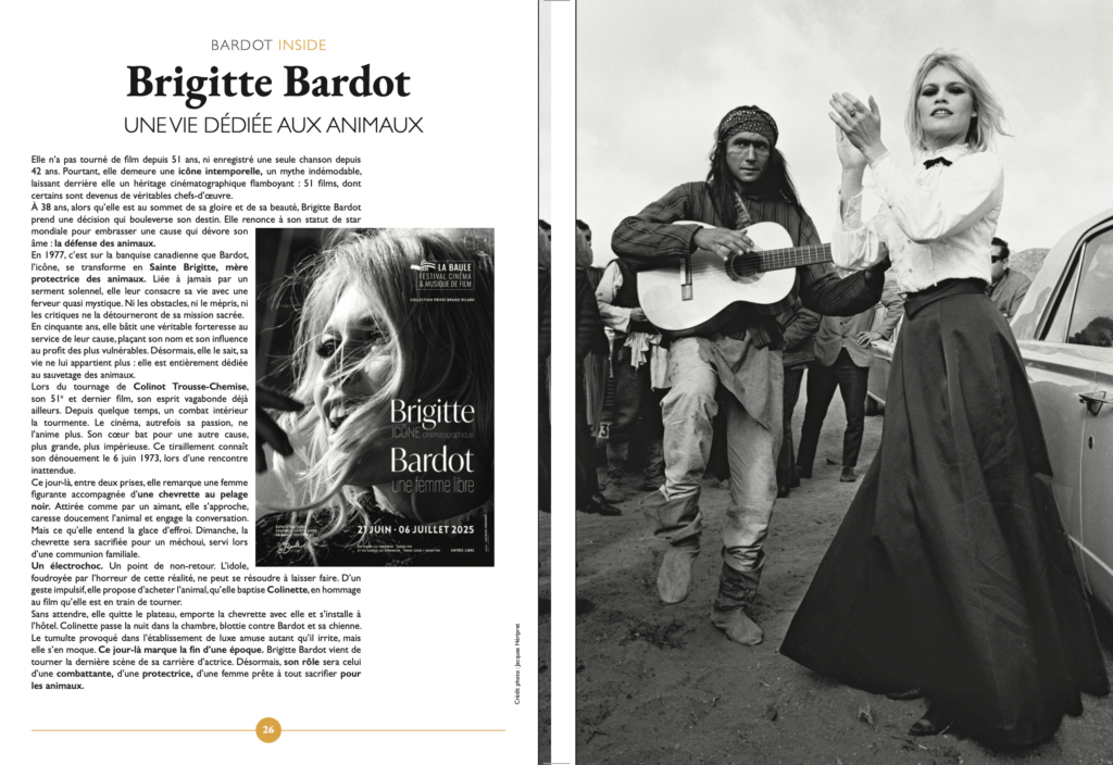 Cette première interview avec l’immense star qu’était Bardot restera à jamais gravée dans ma mémoire. C’est donc avec une profonde tristesse que, comme tant d’autres, j’ai appris le décès de cette grande dame. Toujours disponible malgré d’innombrables sollicitations, elle avait ce don rare d’offrir un mot gentil, une attention sincère. Très observatrice, elle regardait toujours son interlocuteur droit dans les yeux. C’était Brigitte !