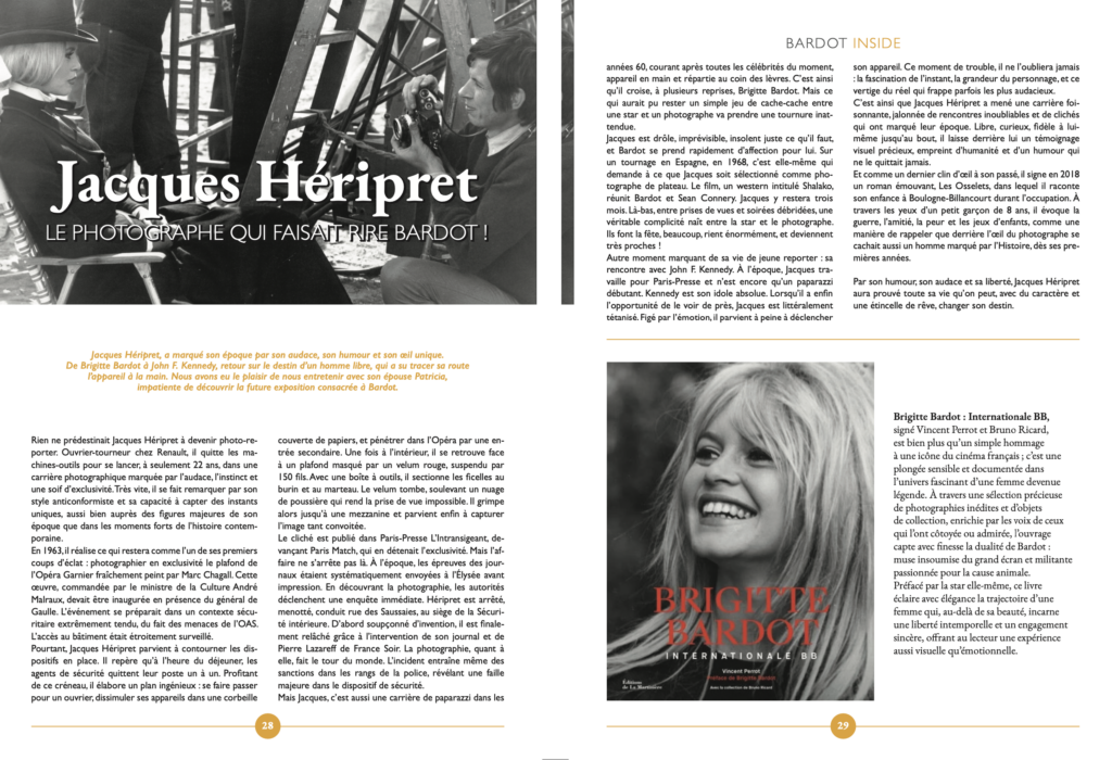 Nous avons bien sûr interviewé Bruno Ricard qui, fut dans la vie de Brigitte une sorte de gardien du temple, notamment sur le plan moral. Tant que des personnalités de cette trempe continueront d’entourer une femme comme elle avec autant d’énergie et d’amour, nous pouvons être rassurés … les années ne passeront jamais sans Bardot.