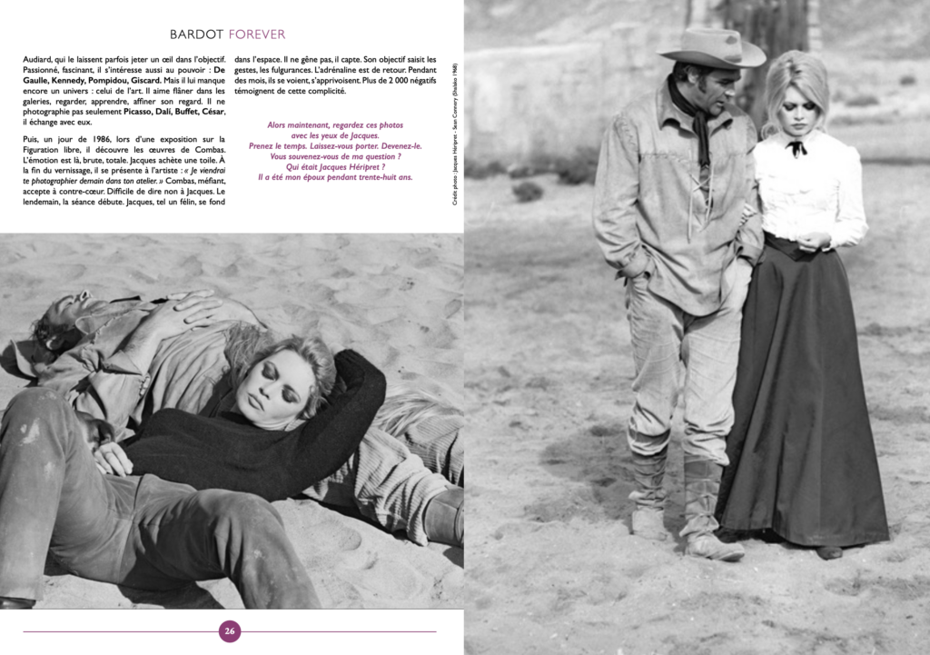 Il y eut également la rencontre avec Patricia Héripret, épouse du célèbre photographe Jacques Héripret. Témoins privilégiés d’une époque, ils ont vécu les parties de ping-pong de Boris Becker chez Eddy Barclay, les plongeons de Carlos dans la piscine de ce dernier, et surtout les facéties de Jacques, le « paparazzi » que Bardot appréciait tant et avec qui elle riait aux éclats. Elle l’avait même glissé dans sa valise pour l’emmener suivre les coulisses du film Shalako, aux côtés de Sean Connery, en 1968.