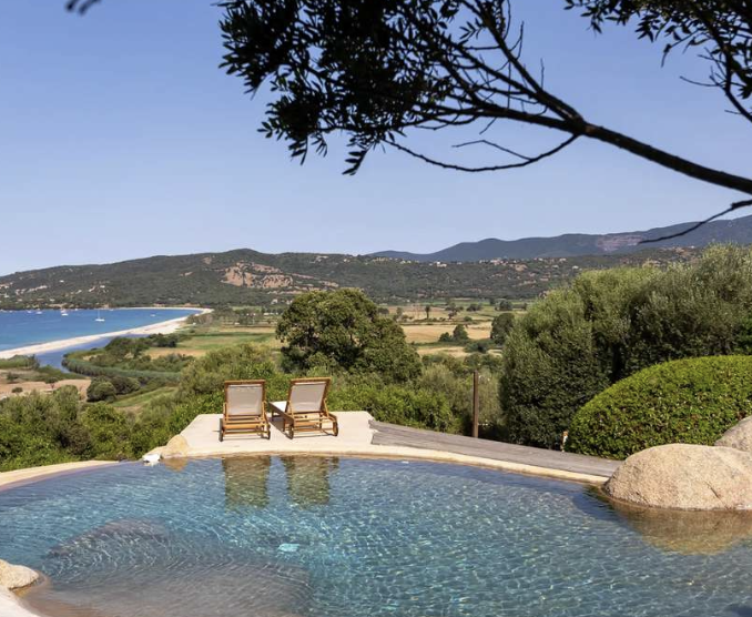 Accrochée à la roche, cette villa d’architecte semble flotter entre ciel et mer. Face au golfe du Valinco, elle déploie un panorama spectaculaire à 180°, à la fois sauvage et apaisant. Le maquis, la pierre brute et la Méditerranée composent un décor saisissant, où le luxe contemporain dialogue avec une nature intacte. À seulement quelques minutes des criques d’Olmeto Plage et de Propriano, cette adresse confidentielle réinvente avec élégance l’art de vivre corse.